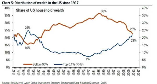 贫富分化这么剧烈的原因,我们之前在《通胀以后就是债务崩塌》和《两次大危机之前到底发生了啥》里面也讲过。
