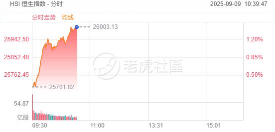 9月9日,恒指盘中突破26000点,续创2021年10月以来新高;恒生科技指数涨1.8%,网易-S涨超5%,股价站上230港元创历史新高;快手-W涨超4%,阿里巴巴-W涨超3%。