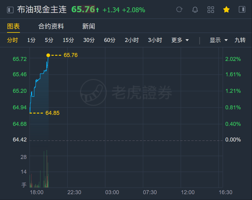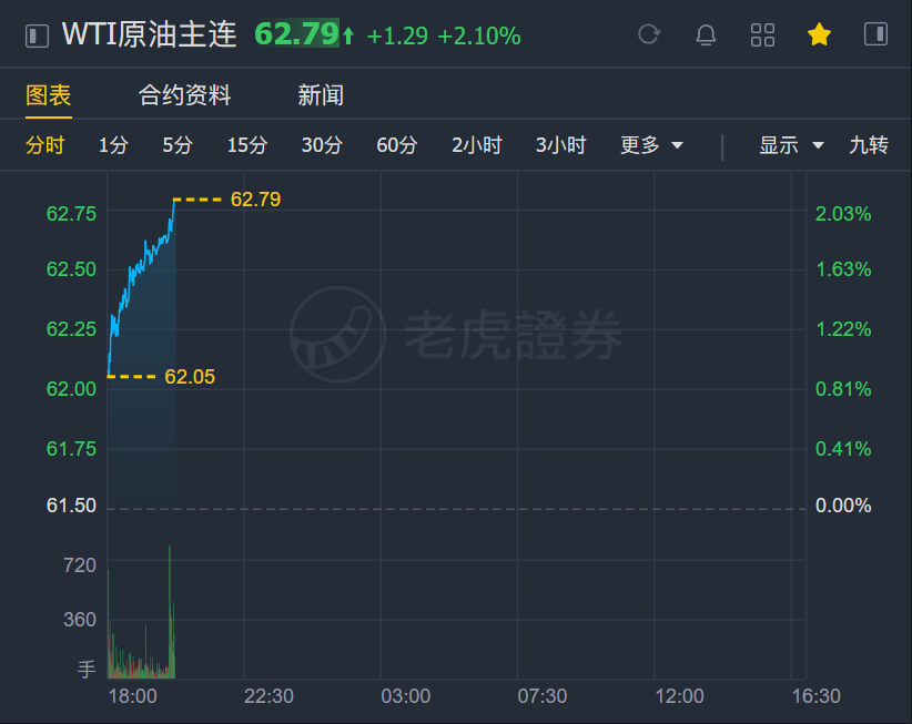 3月1日,美、布两油涨幅持续扩大,截止发稿,WTI原油期货涨2.1%,现报62.79美元/桶;布伦特原油期货涨2.08%,现报65.76美元/桶。