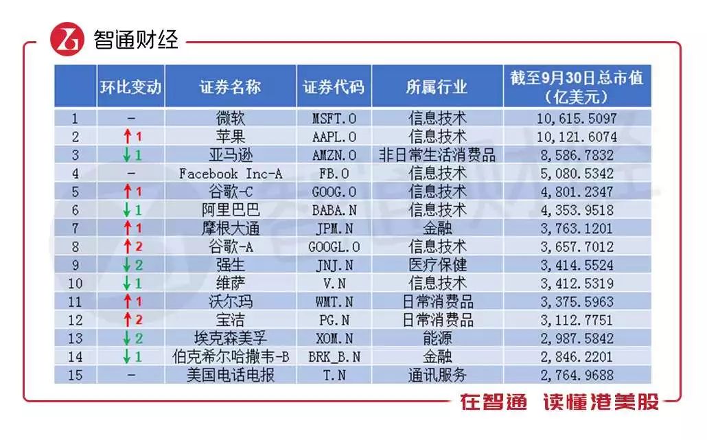 就目前美股的构成来看,上市公司家数最多的三个行业分别为金融、医疗保健、信息技术,所在行业上市公司家数约占总体上市公司数量的约49%,为构成美股最主要的三个行业。然而,三个行业在三季度的市值环比变动分别为-0.78%、-3.26%、2.86%。