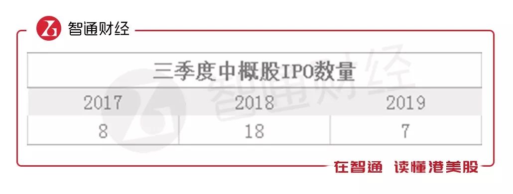 此外,中概股三季度最大IPO项目斗鱼(DOYU.US)也进入了美股三季度IPO规模前十排名。相比之下,三季度赴美IPO的中概股数量较去年同期出现锐减,由去年同期的18起锐减至今年仅7起,较2017年同期也有所减少。