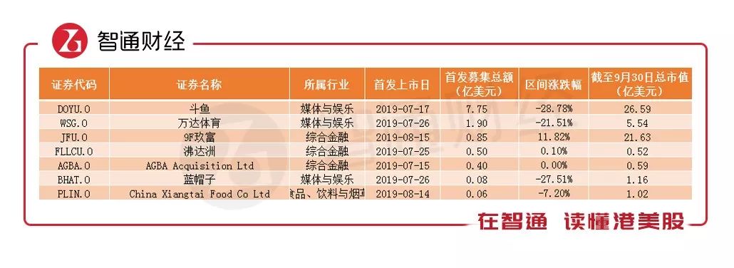 与上半年有所不同,中概股于三季度的IPO中,媒体与娱乐公司占比有所增多。今年三季度,赴美IPO的中概股主要以金融、媒体娱乐行业为主,而上半年则主要集中在非日常消费和金融。
