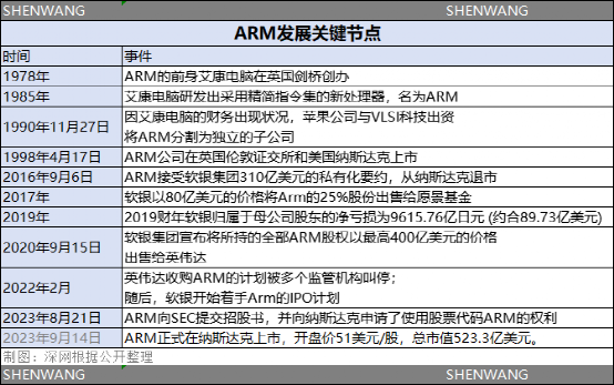事实上,这并非ARM首次IPO。1998年4月17日,ARM已经在英国伦敦证交所和美国纳斯达克上市。2016年,ARM接受软银集团310亿美元的私有化要约,从纳斯达克退市。