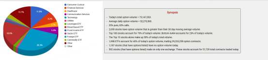 期权市场总成交量73,147,553张合约,总成交量高于90日平均,其中看涨期权占比为65%。