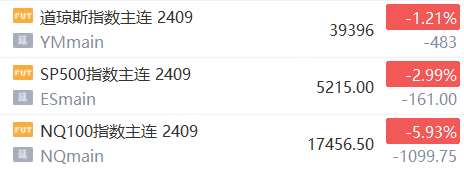 8月5日,美股期货跌幅扩大,纳斯达克100指数期货跌近6%,标普500指数期货跌近3%,道指期货跌超1%。