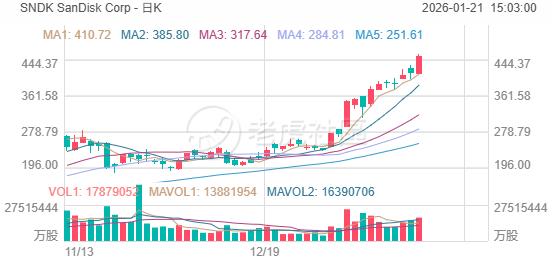 昨日,存储龙头Sandisk逆势收高9.55%,连创历史新高,年内涨幅暴涨超90%。花旗集团将闪迪目标价从280美元上调至490美元,称看好数据中心内存需求强劲、供需条件有利以及该公司具备强大的竞争护城河。花旗认为,闪迪在企业固态硬盘细分市场的份额有望持续增长。