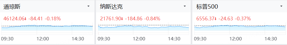 在互相矛盾的中东消息影响下,美股三大指数重拾跌势。截至收盘,标普500指数跌0.37%,报6556.37点;纳斯达克综合指数跌0.84%,报21761.89点;道琼斯工业平均指数跌0.18%,报46124.06点。
