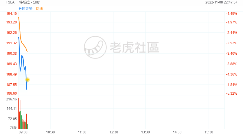 11月8日,特斯拉跌幅扩大至5%,此前消息,在美召回超过4万辆2017-2021年产Model S/X汽车。