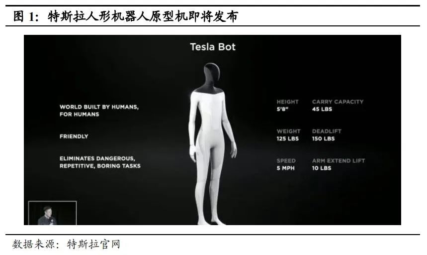 特斯拉人形机器人原型机即将发布,机器人市场的 “鲶鱼”。2021年8月19日,特斯拉在首个AI日上发布人形机器人概念图及视频,2022年6月21日,马斯克表示Tesla Bot的原型机将在9月30日的AI日首次现身,特斯拉人形机器人加速推进。
