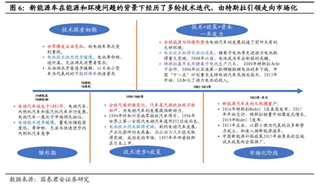 回顾新能源车的发展,人形机器人处在市场化的前夜。在特斯拉出现之前,新能源车也面临过成本与需求不清晰的混沌期,主要是短期技术的限制造成的。尽管电动汽车19世纪就诞生,早于汽油车,但当时电池密度低、寿命端,无法与快速进步的内燃机汽车竞争,在过去百年之中市场先选择了汽油车。随着2005年后电池技术的多轮迭代,续航、充电、寿命等性能都取得突破,在特斯拉的引领下,成本与需求的瓶颈被打破,新能源汽车市场最终迎来了爆发。