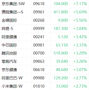 港股异动 | 科指涨幅扩大至2%,京东涨超7%,腾讯控股涨超3%