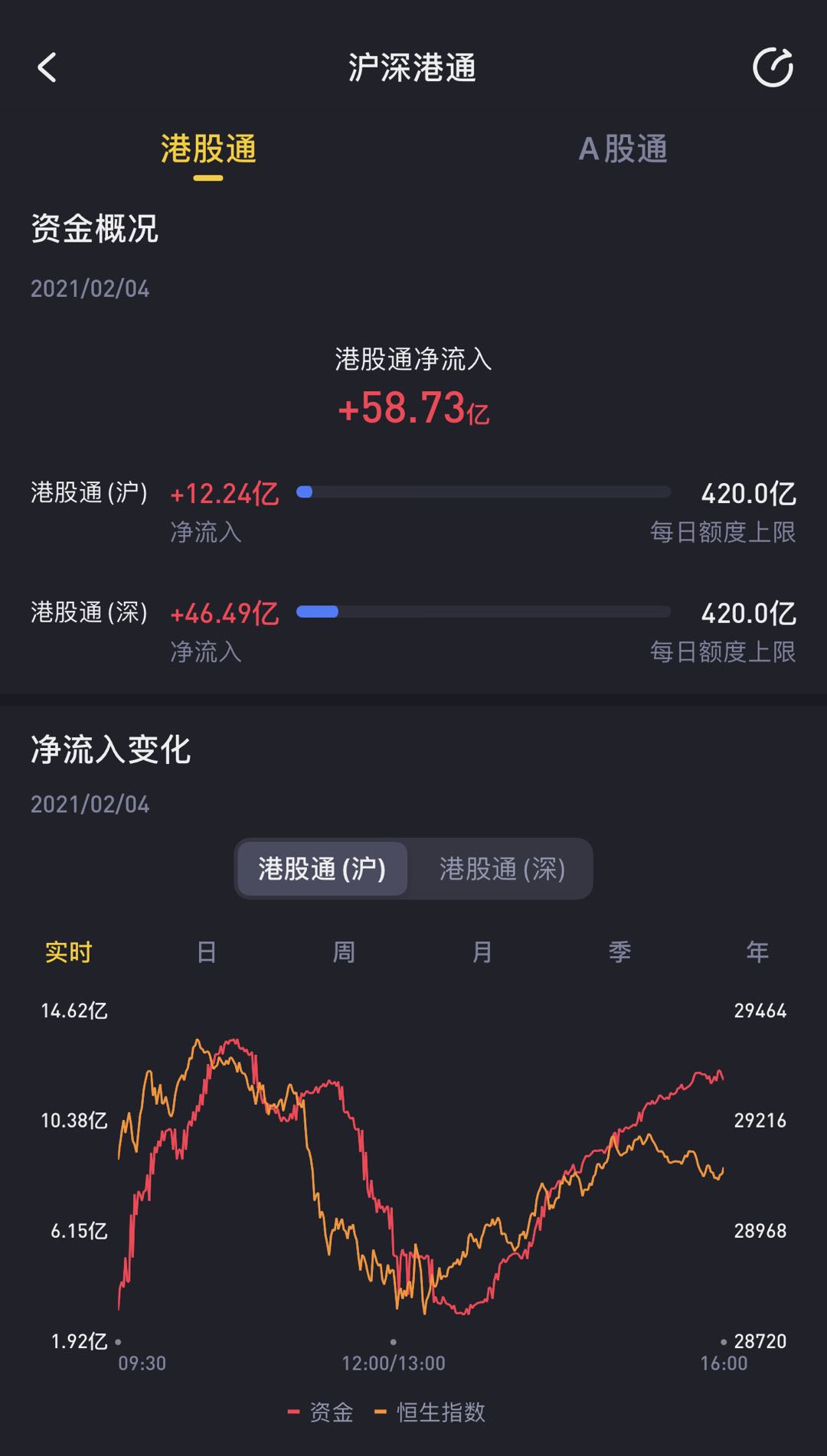 今日南下资金大幅净流入58.73亿港元,大市成交额为2397.85亿港元。