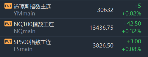 美国三大股指期货短线拉升,截至发稿,道指期货涨0.02%;纳斯达克100指数期货涨0.32%;标普500指数期货跌0.08%。