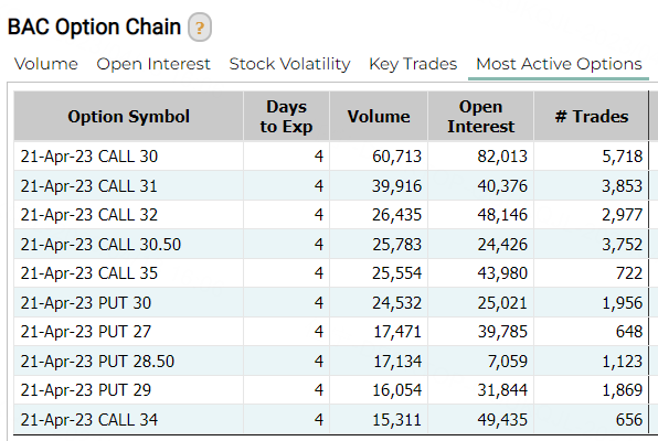 我们发现,美国银行排在了期权成交榜的第五位,周内的看涨期权交易较为活跃。美国银行正股周一涨2.88%,月内涨超6%,并将于周二盘前发布财报。