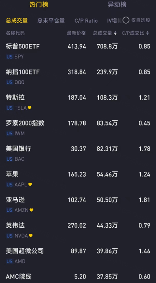 期权成交总量TOP10