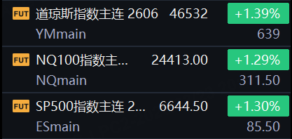 3月23日,美股三大期指全线回升,情绪较前夜明显改善。道琼斯指数期货最新报46532点,日内上涨1.39%;标普500指数期货报6644.5点,上涨1.3%;纳斯达克100指数期货报24413点,上涨1.29%。中东地缘风险暂未进一步升级,叠加机构对美大型科技盈利韧性的预期,指数期货早盘温和反弹,市场对晚间开盘保持谨慎乐观。