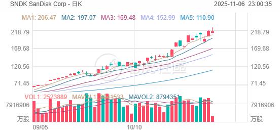 周四,存储概念股延续盘初涨势, 西部数据 、 美光科技 、 希捷科技 、 SanDisk Corp 均创历史新高。