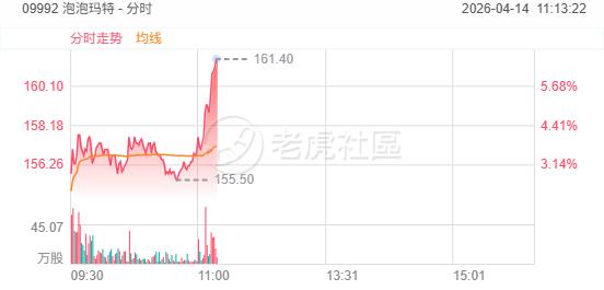 泡泡玛特盘中直线拉升。