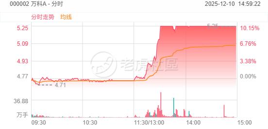 12月10日,地产股午后异动上涨,万科A冲击涨停,最高超过27亿资金封死涨停板,财信发展、华夏幸福、金地集团、保利发展、绿地控股等跟涨。港股万科企业一度大涨超19%。