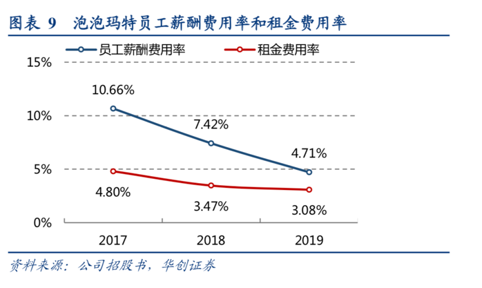 对于线下零售来说,门店越多资产越重,但是,重点商圈的长合约租金的提升,与公司在扩张时,在下沉商圈取得的租金议价能力对冲。泡泡玛特在费用率方面表现出趋势性下降,这要归功于店铺坪效的提升。