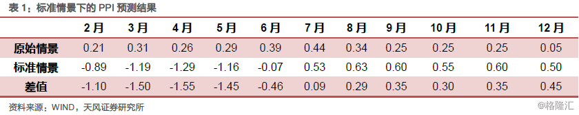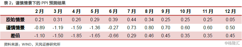 根据上述分析,相比于原始情景,我们对CPI和PPI的预测更新如下。