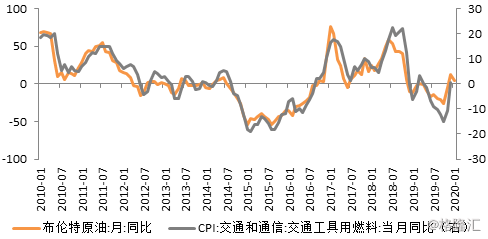 图2:交通工具用燃料CPI与油价相关性较高