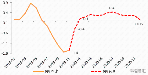 对于PPI,我们原先预计2020年1季度PPI同比延续2019年年底以来的反弹趋势,开年转正、上半年震荡回升,年中之后触及高点,下半年中枢缓慢回落,全年中枢在0.2%-0.3%。