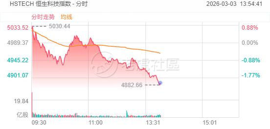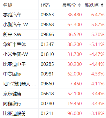 3月3日,恒生科技指数跌幅扩大至2%,成分股中,零跑汽车跌超6%,小鹏汽车-W、蔚来-SW、华虹半导体跌超5%。