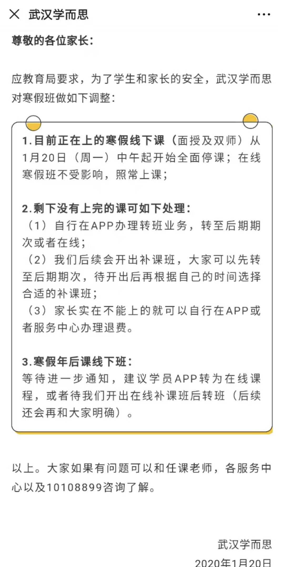 学而思、新东方武汉校区停课