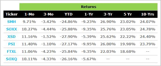 鉴于其流动性,相对于其他 ETF,SMH目前显然是投资者的最爱。然而,这些基金的历史回报表明,它们在业绩表现非常相似。