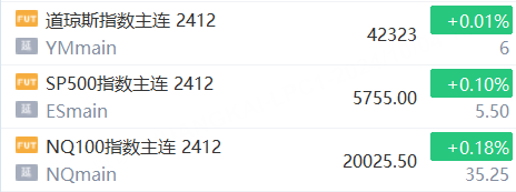 10月4日,美股三大股指期货上涨,截止发稿,道指期货涨0.01%,纳指期货涨0.18%,标普500指数期货涨0.10%。