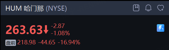 联合健康 大跌16%。第四季度营收1132亿美元,市场预期1138.2亿美元;经调整后每股收益2.11美元,市场预期2.1美元;预计2026年全年经调整后每股收益在17.75美元上方,市场预估17.69美元。