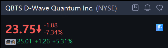 量子计算概念走高, D-Wave Quantum Inc. 涨超5%,IONQ Inc. 涨超3%, Rigetti Computing 涨超2%、 Quantum Computing Inc. 涨超1%。