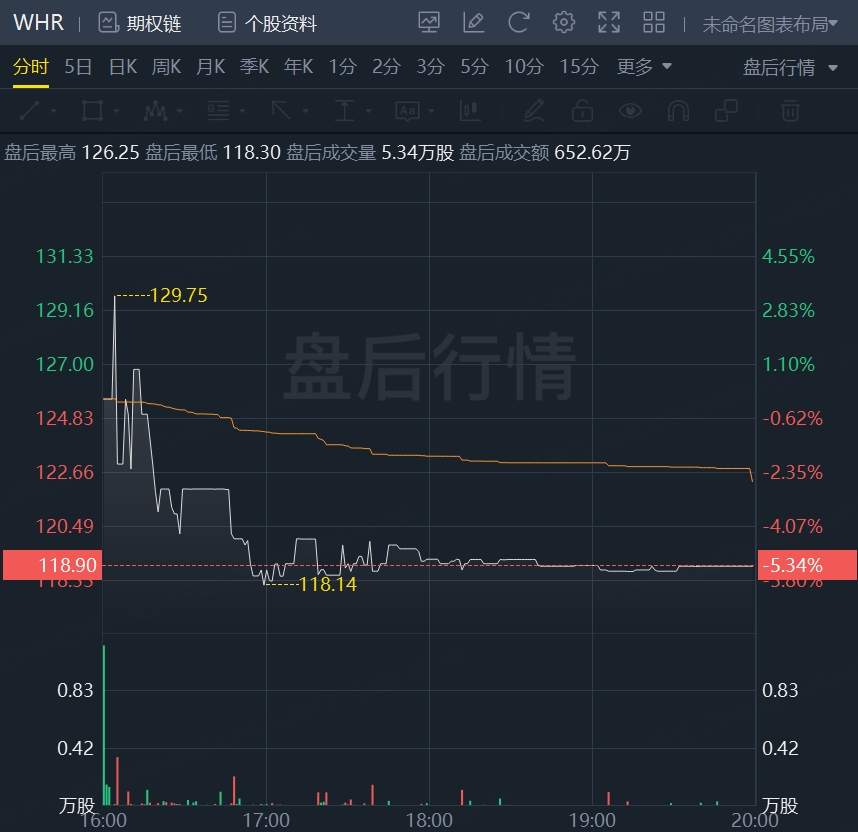 财报发布后,惠而浦美股盘后跌逾5%。
