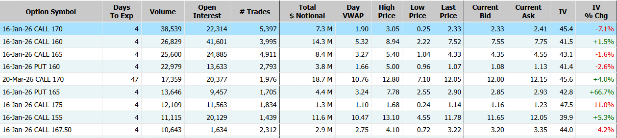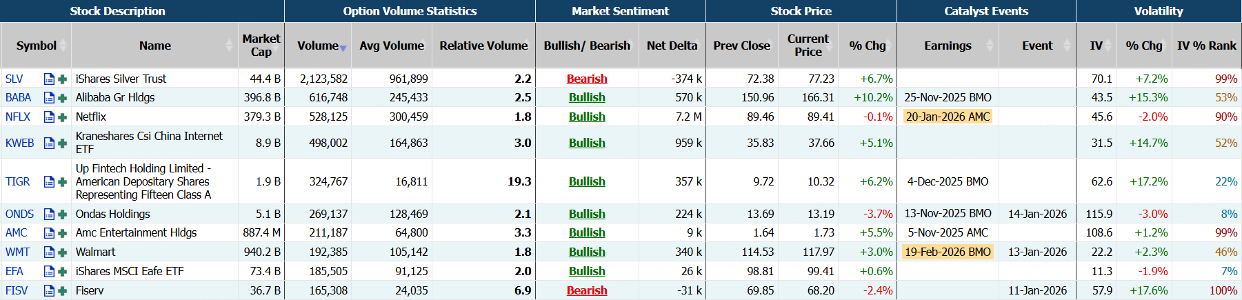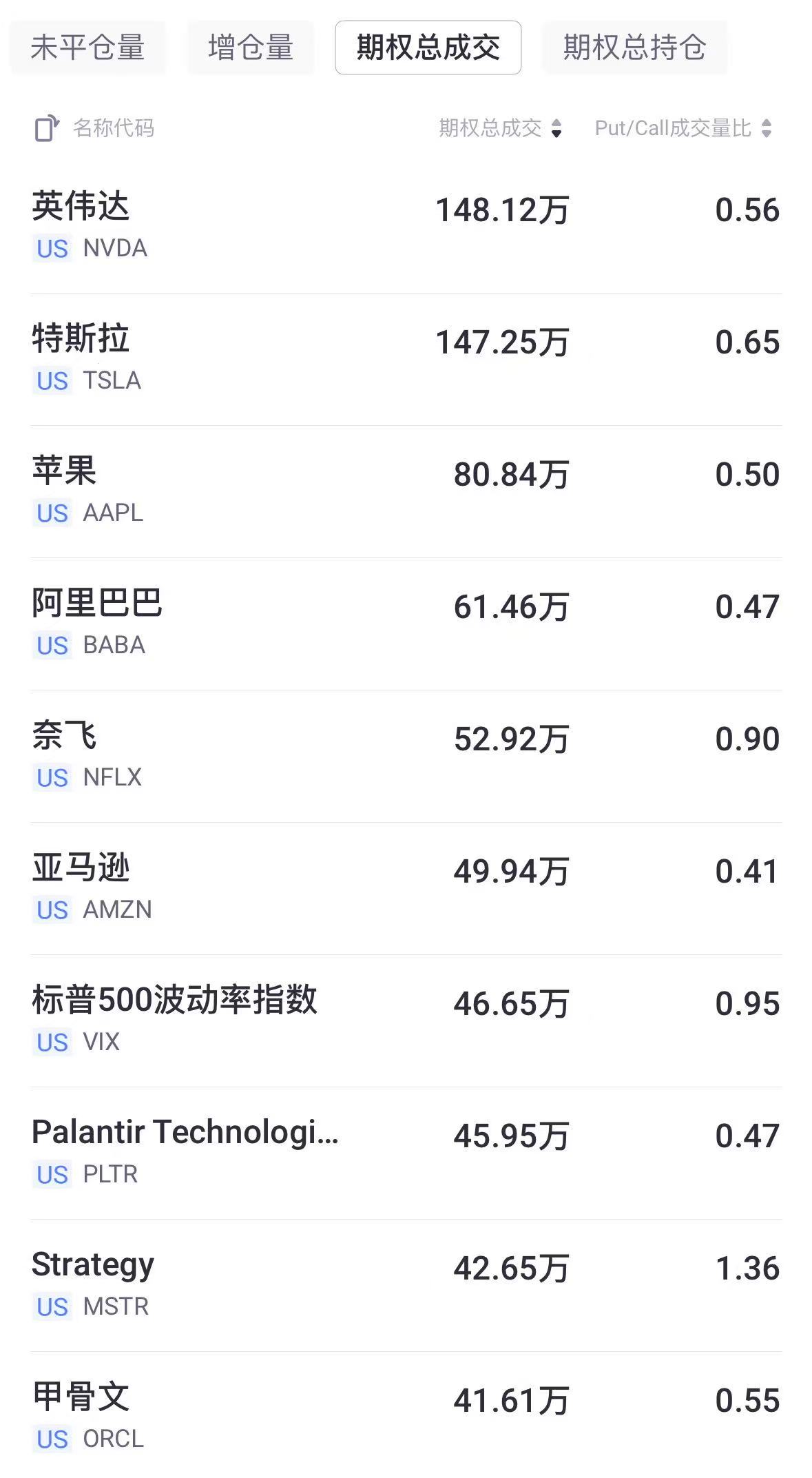 隔夜,阿里巴巴涨超10%,期权合约成交61.46万张,较90日均量放大2.5倍。1月16日到期的170美元的行权看涨期权交易量特别高,共有38,539份合约交易。 $BABA 20260116 170.0 CALL$
