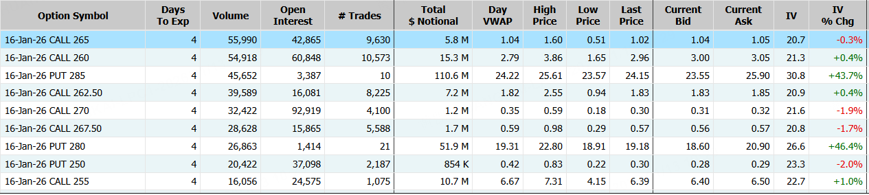 隔夜,苹果小幅上涨,期权合约成交80.84万张,1月16日到期的265美元的行权看涨期权交易量特别高,共有55,990份合约交易。 $AAPL 20260116 265.0 CALL$