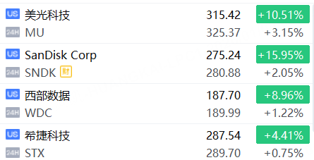 1月5日,美股夜盘时段,存储概念股续涨。美光科技涨超3%,SanDisk Corp涨超2%, 西部数据、希捷科技跟涨。