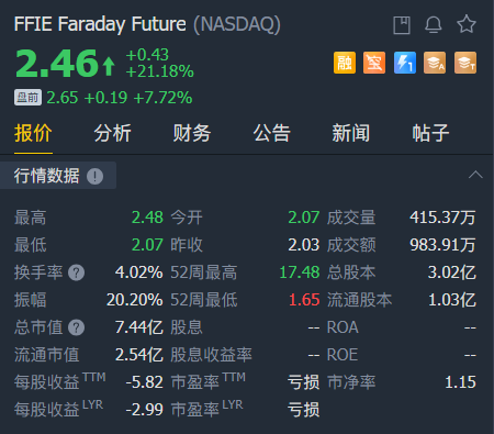 法拉第未来盘前涨7.72%,法拉第未来全球CEO毕福康表示仍然有信心在今年第三季度交付FF 91。