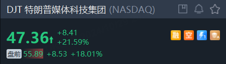 特朗普媒体科技集团涨幅超18%!昨日大涨21%,本季度已涨近200%。消息称特朗普在基于区块链的博彩市场上的领先优势接近67%。