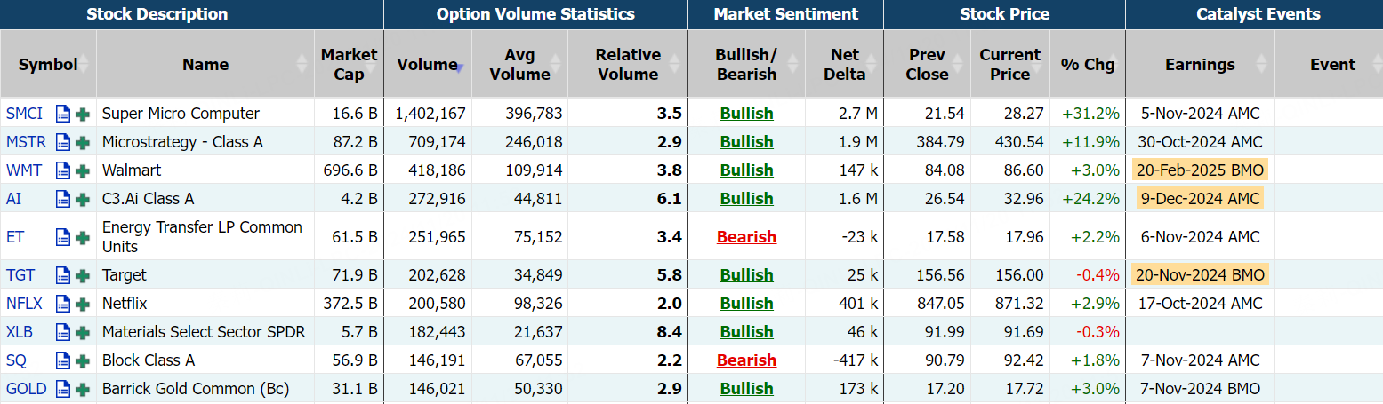 周二,期权市场总成交量达4037万张合约,低于每日平均期权交易量(4467万张),其中看涨期权占比59%;英伟达股价收高4.89%,期权交易员们预计,在英伟达公布季度业绩后,其股价将出现8.5%的波动;超微电脑大涨逾31%,公司提交合规计划。