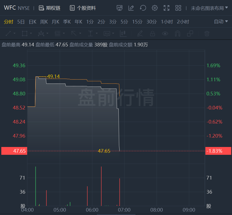 财报发布后,富国银行盘前跌近2%