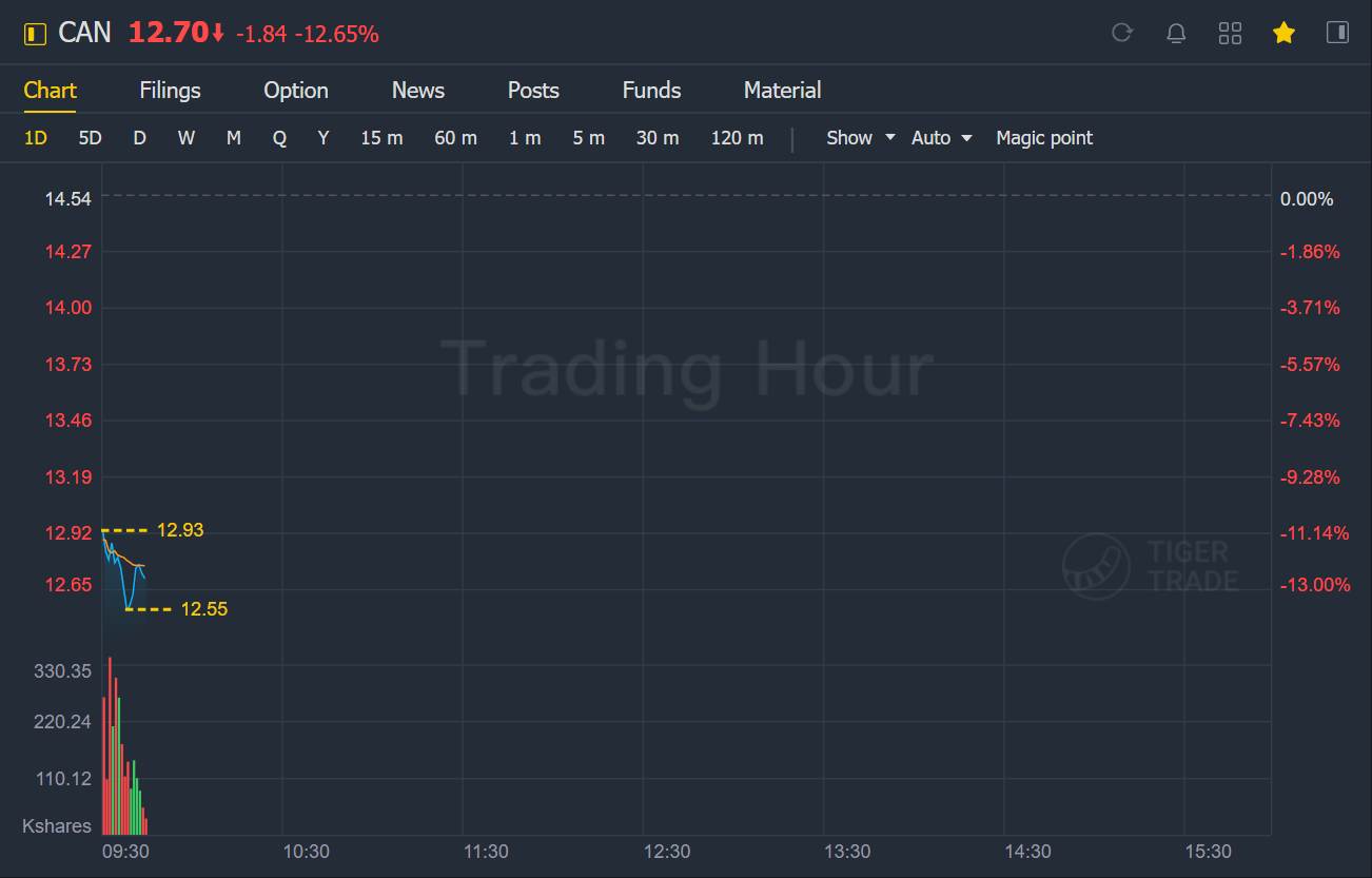 Canaan Inc fell by more than 12%, and the company announced today that it has reached a fixed increase agreement to issue an additional US$170 million worth of ADS.