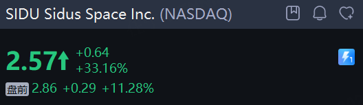 太空概念股 Sidus Space 再涨超11%,昨日收涨33%,近六个交易日暴涨200%。