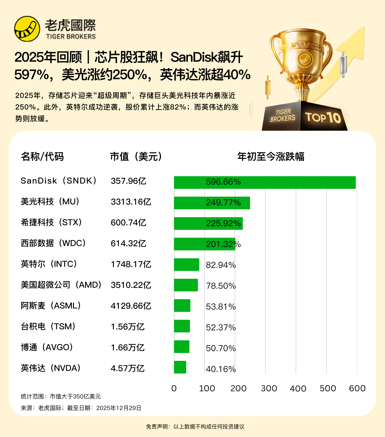存储芯片今年迎来“超级周期”,存储巨头美光科技年内暴涨近250%,成为资本市场的明星股。与此同时,英特尔成功逆袭,股价累计上涨82%,回归投资者视野,而英伟达则在今年的涨势放缓,但依然保持较强的市场表现。