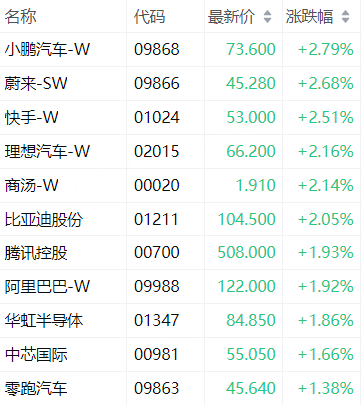 科指成分股中,小鹏汽车-W涨2.79%,蔚来-SW涨2.68%,快手-W涨2.51%,理想汽车-W涨2.16%,商汤-W涨2.14%。