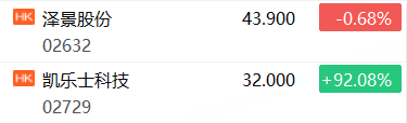 新股方面:凯乐士科技上市首日涨超92%,泽景股份跌0.68%。