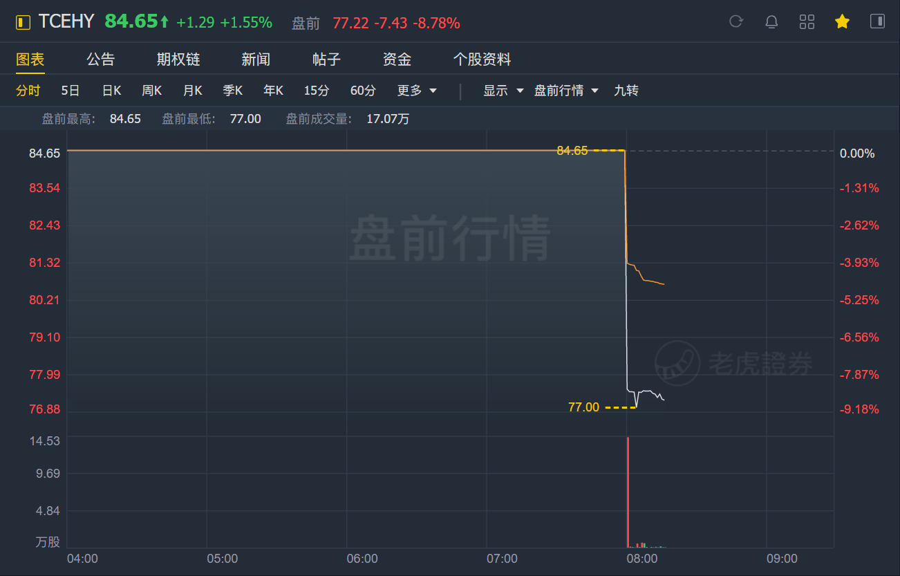 4月7日,腾讯控股ADR盘前跌近9%,腾讯大股东Prosus出售1.9亿股,涉资1141亿港元。
