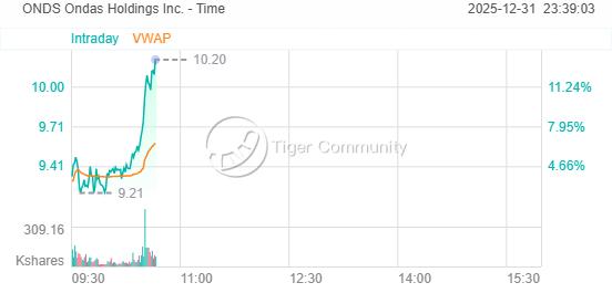 Ondas Holdings Inc.(ONDS)股价飙升 13%。公司宣布其自主系统产品组合新增约 1000 万美元采购订单。