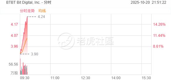 加密货币股随比特币走高, Bit Digital, Inc. 大涨15%,Riot Platforms涨超8%,BMNR涨7%,MARA涨超6%,Strategy涨超4%,Coinbase涨超3%。