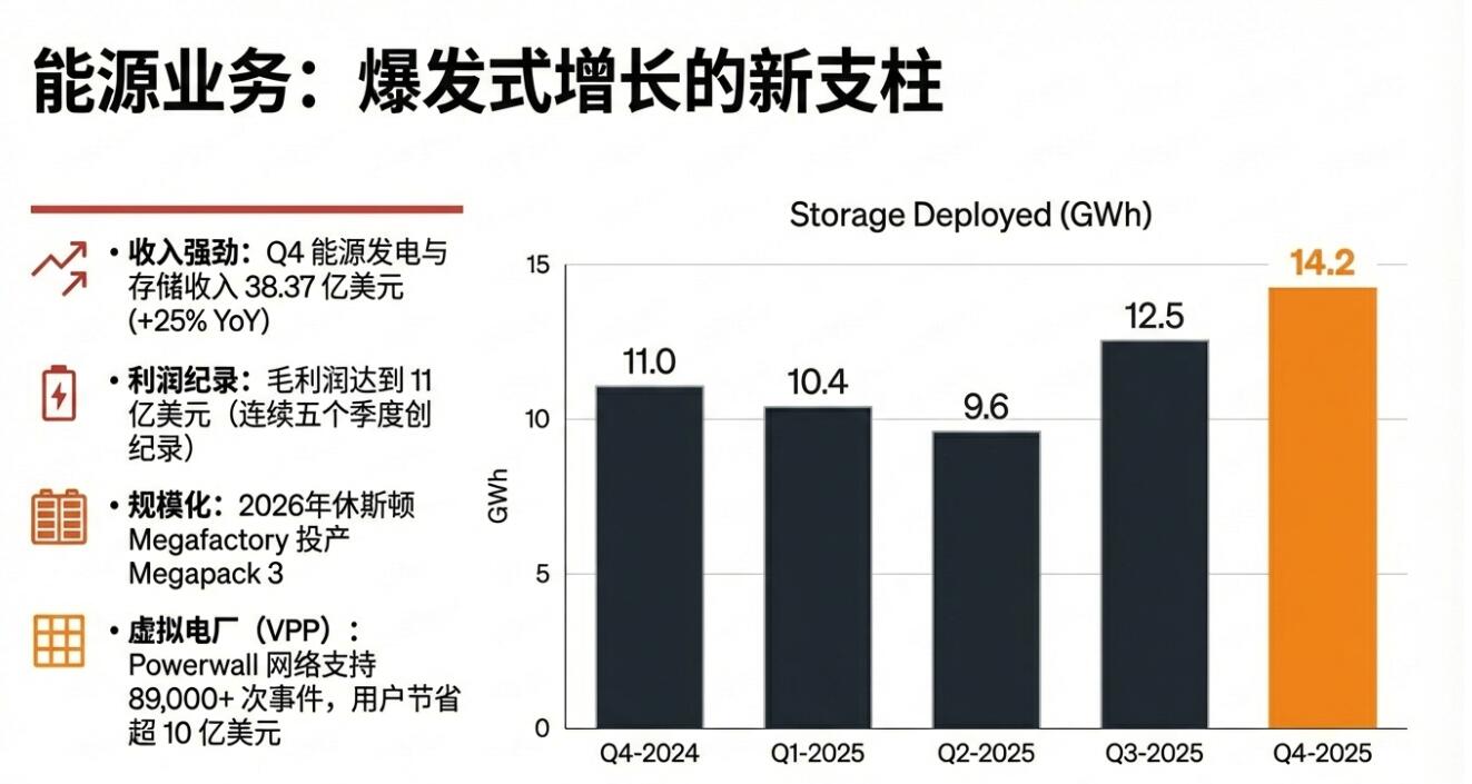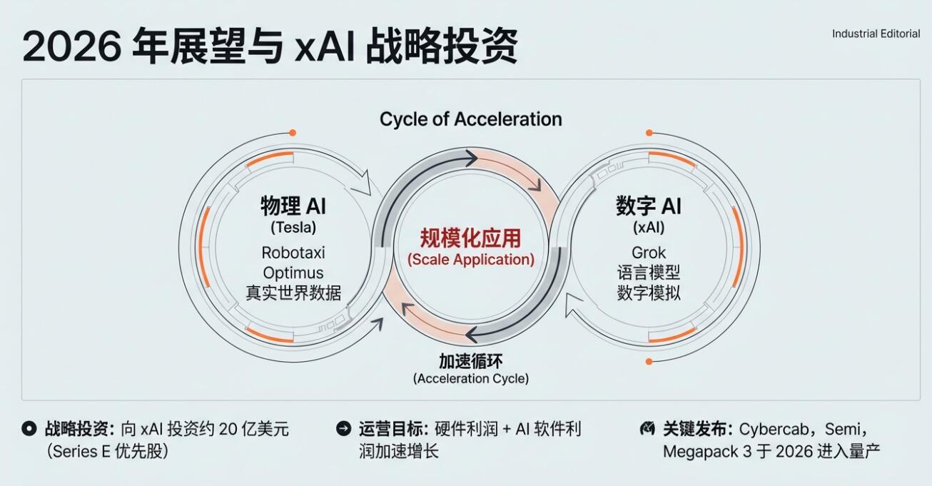 虽然特斯拉四季度营收由三季度的两位数同比大增转为下滑,但储能部署装机量创纪录,应被市场视为短期内对冲汽车端下行的“硬支撑”。更重要的是,特斯拉强调“物理 AI”进展与对外投资。